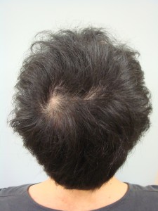 全体的に髪質も強く太くなり、生え際の後退も改善、頭頂部の地肌の露出範囲が確実に狭くなりました。ご本人様も生え際、頭頂部の発毛を実感。