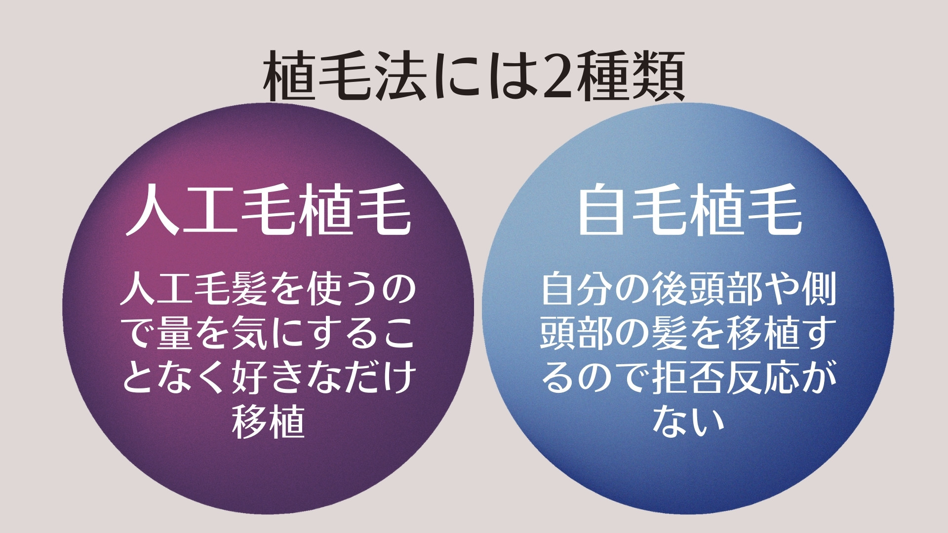 自体毛发移植因使用自身毛发,具有成活率高、效果自然、排异反应少等特点。而人工毛发移植虽具有价格低廉、见效快的优势,但存在炎症风险、成活率低等安全性问题,需由专业医师进行判断。 - ③ 植发属于外科手术,必须充分了解适应症、费用、恢复期及术后护理