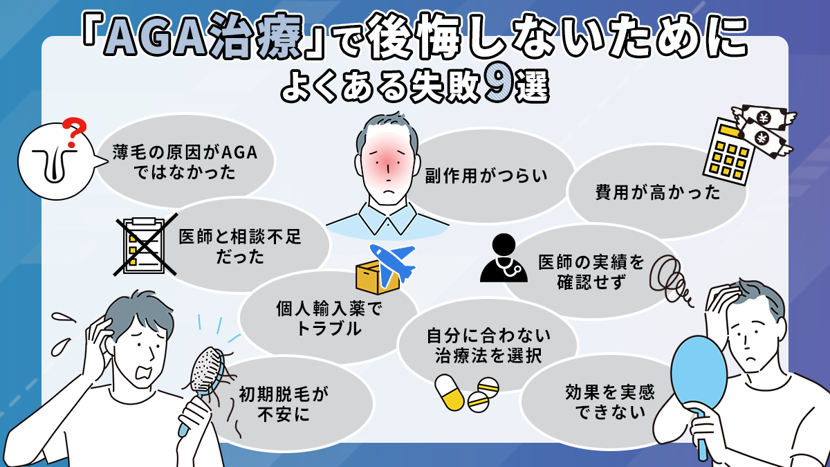 AGA治療で後悔する人の9大原因は?失敗しないためのクリニックと治療法選び対策ガイド