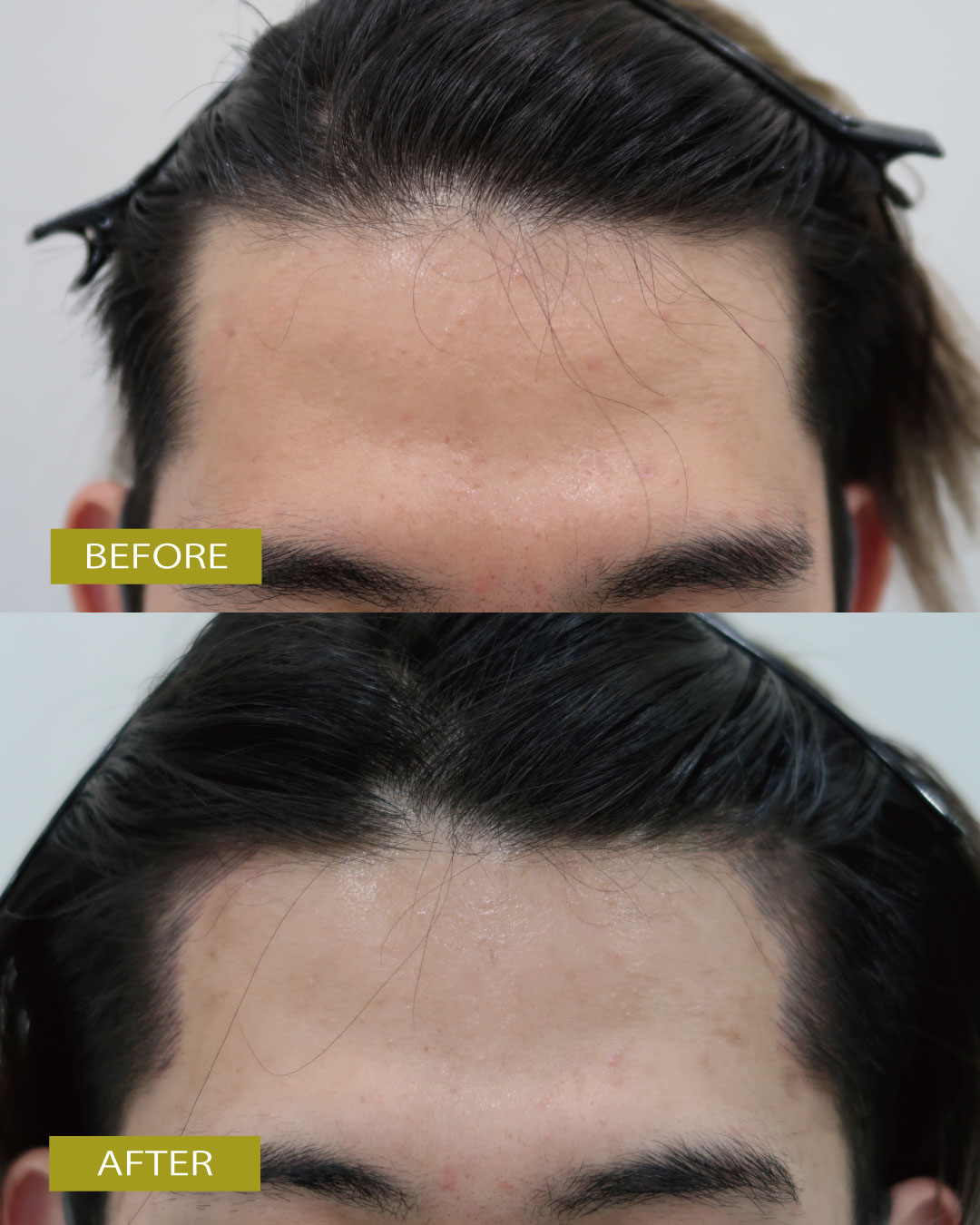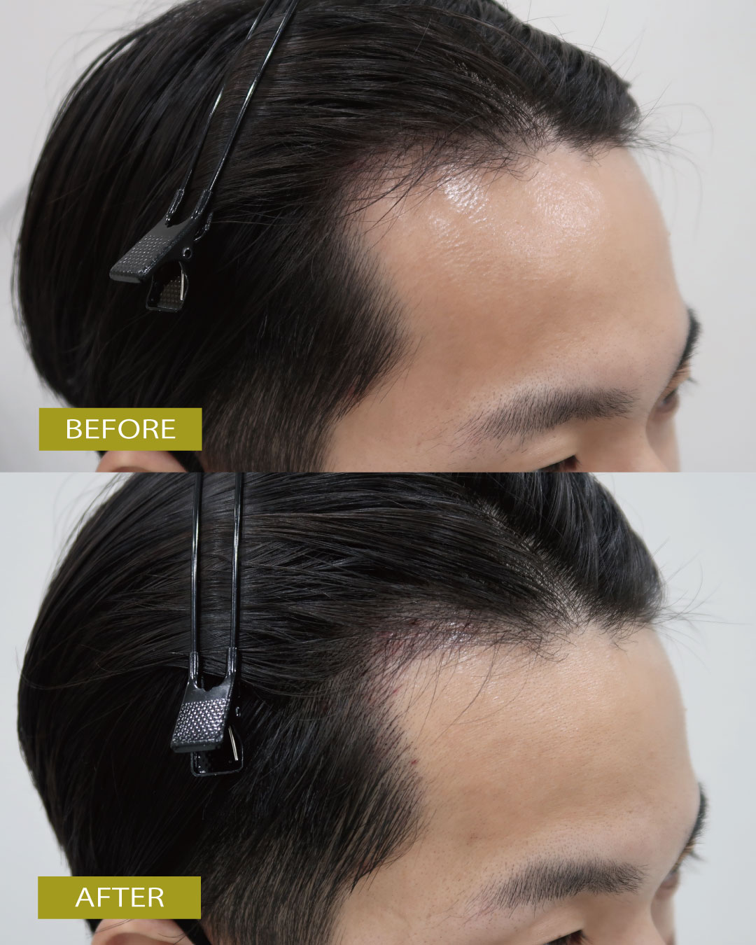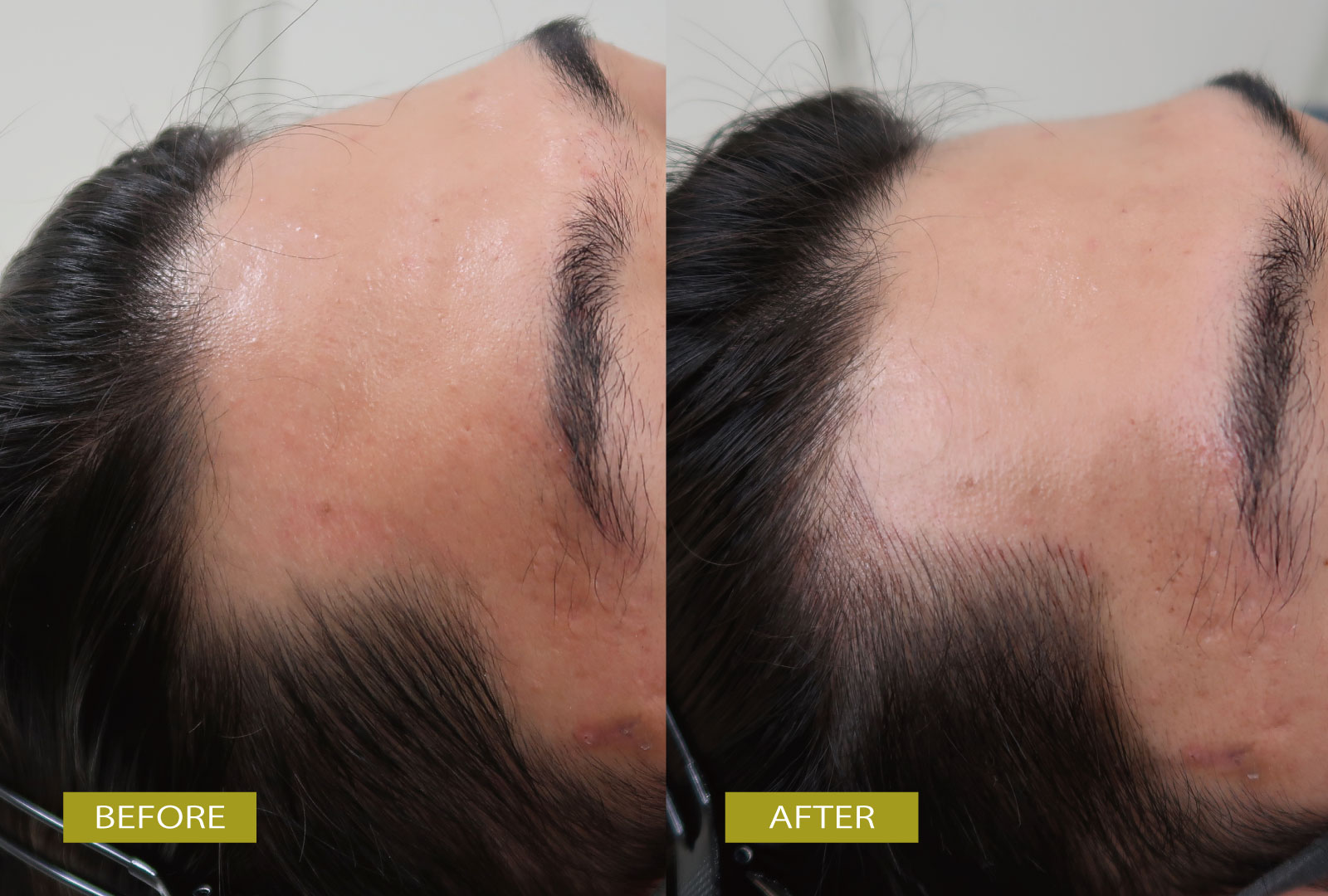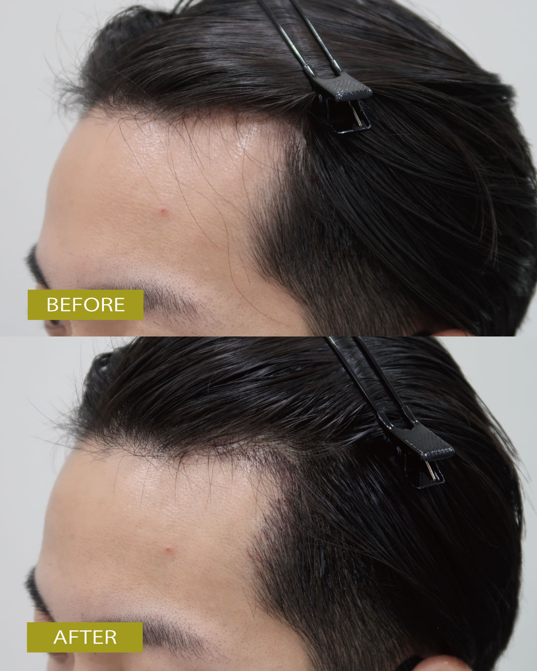 当院では、メンズヘアラインのアートメイクを行っており、瘢痕部分や薄くなった生え際や頭頂部に施術を施すことで、薄毛部分のお悩みも解消することができます。
