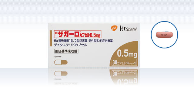 商品名称是“度他雄胺胶囊0.1mg,0.5mg”,分为0.1mg以及0.5mg的2种制剂。主要成分是“度他雄胺”,与MSD公司的普罗佩西亚(非那雄胺)相同,都被分类为“5a还原酶阻碍药”。能抑制Ⅰ型和Ⅱ型5α-还原酶的药物,有效抑制产生男性型脱发(AGA)的病原体DHT,从而令缩短了的毛发周期正常化。由于保法止只能抑制Ⅱ型5α-还原酶,因此多个临床研究认为度他雄胺更能发挥抑制脱发的作用。