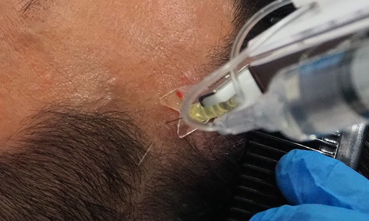 这是一种利用这些效果,将生长因子集中施用到稀疏的头发区域的治疗方法。