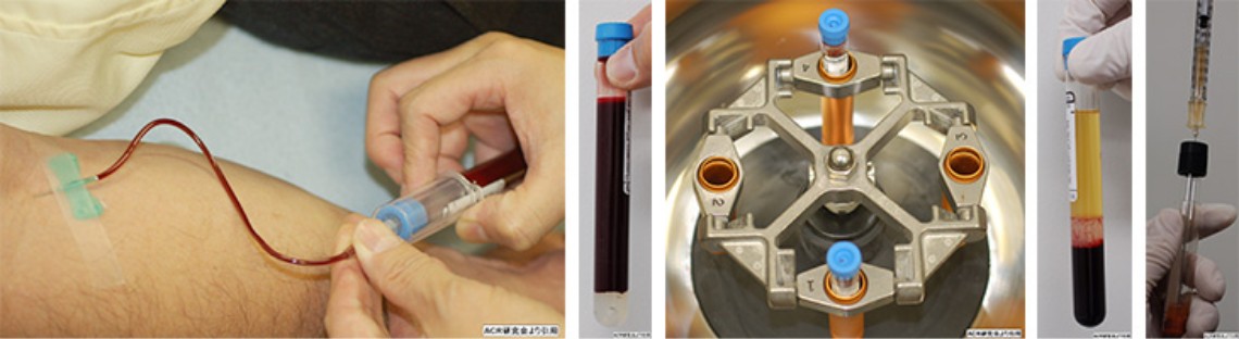 采集所需的血液量(约10cc),到PRP专用的试管中。通过离心分离器制作PRP需花费20到30分钟时间。