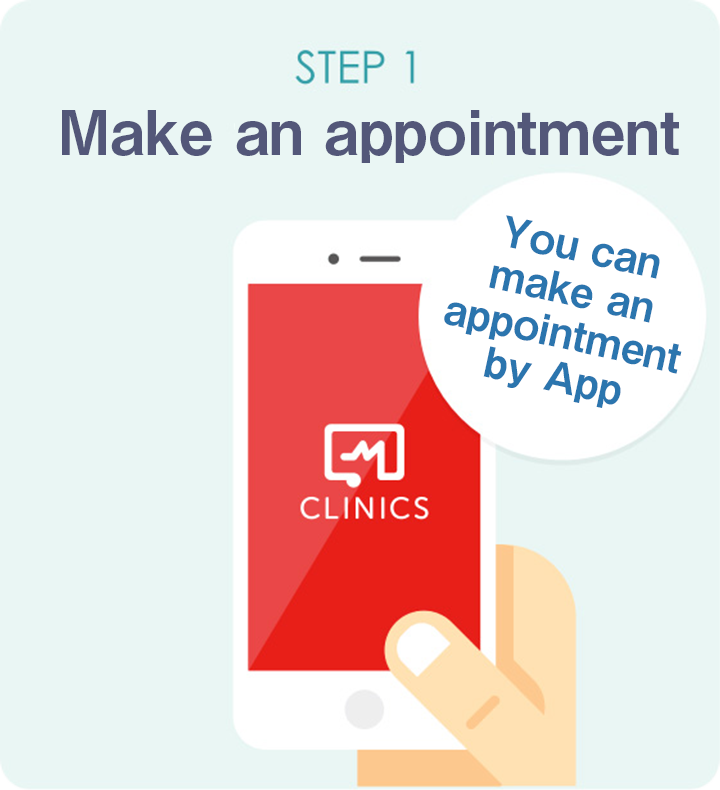 ① Make an appointment ➡ ② Medical examination ➡ ③ Payment ➡ ④ Receive your medicine