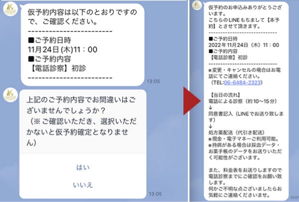 Before the medicine is delivered, we will send you a treatment description, notes on prescribed medicine and side effects, and a consent form regarding the treatment, so please read them and respond to the consent form via LINE.