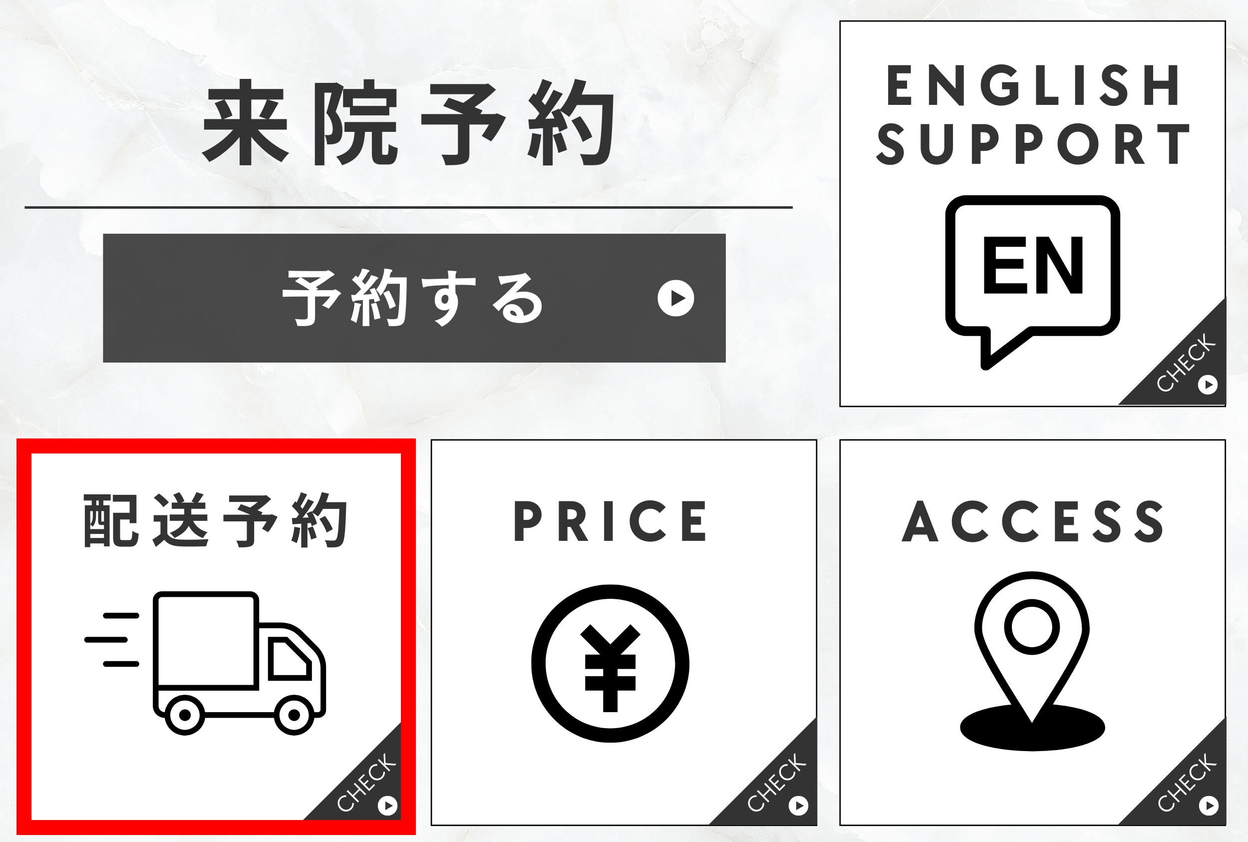 Click on the red frame “配送予約” in the menu, please answer “はい” to the question”当院は初めてですか?”.