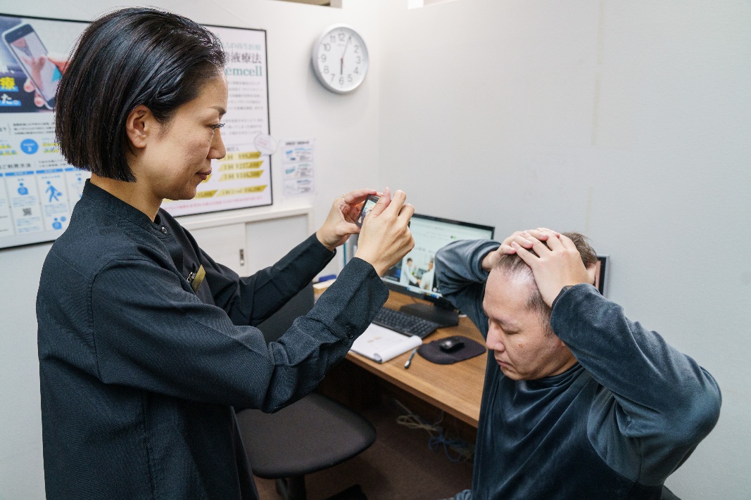 薄毛の進行具合を確認してから、治療に関する患者様のご質問やご要望をお伺いし、今後の治療についてご提案致します。診察当日でもお薬の処方や、注入治療の施術なども可能です。