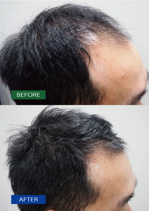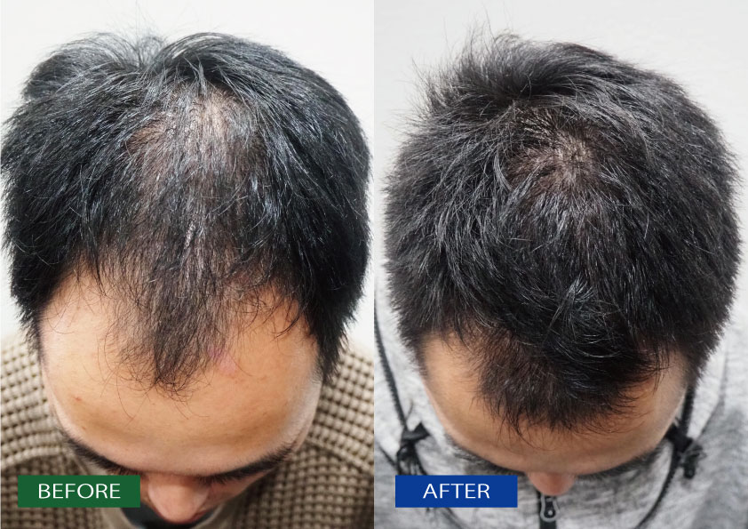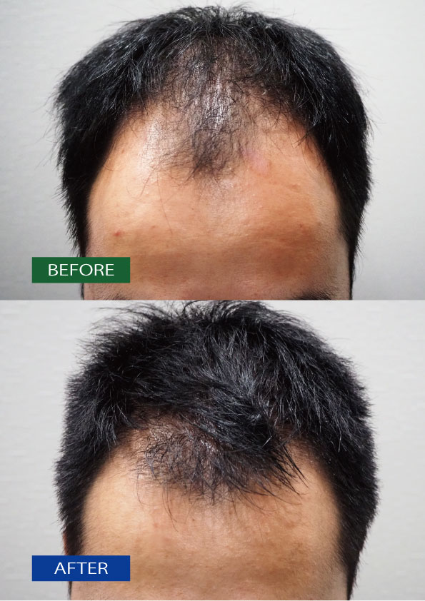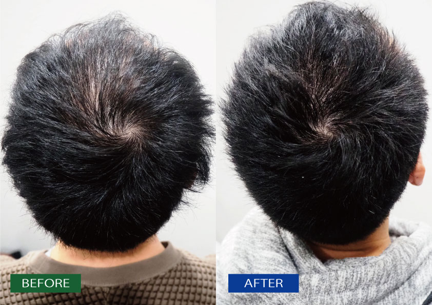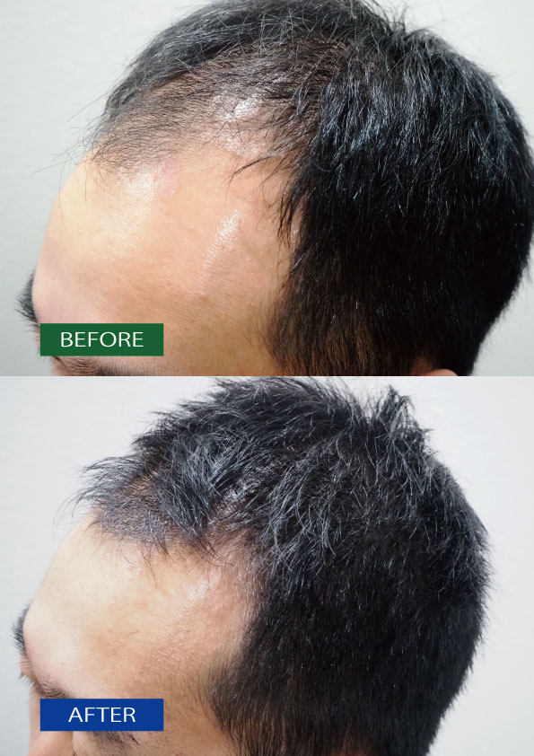 頭皮の露出、髪の軟毛化も改善され、気にされていた生え際部分もしっかりと発毛しています。