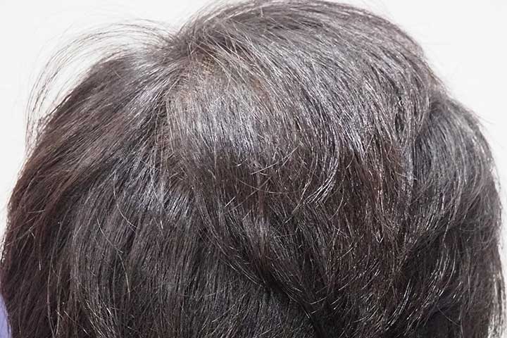 男性用発毛総合治療薬「Pro Hair+」Aセットから治療開始 初期脱毛は特に感じられなかった 服用2ヶ月目から薬の濃度を一段階上げて処方し、12ヶ月目まで同じ濃度で継続