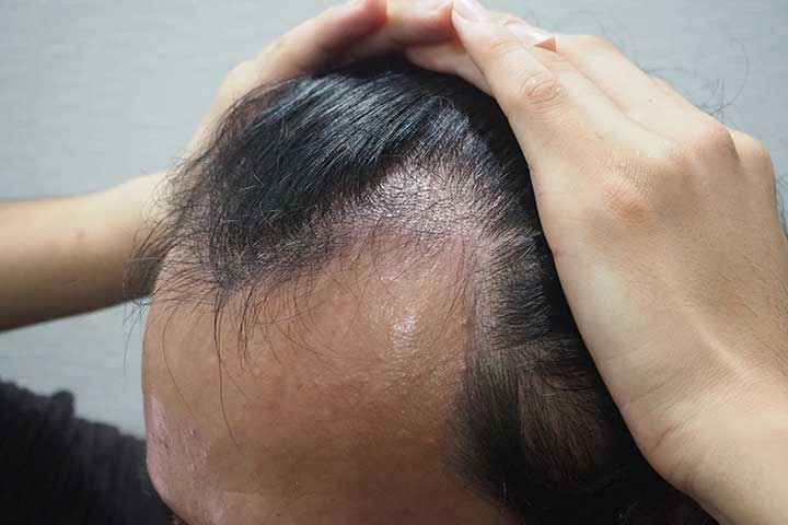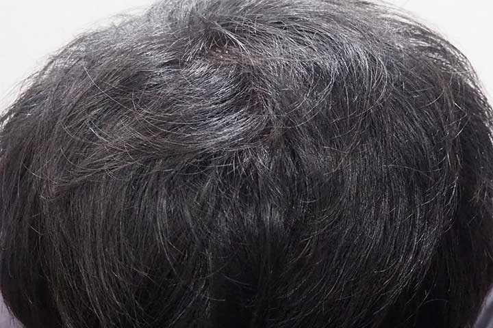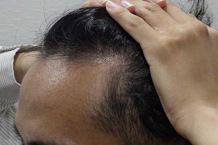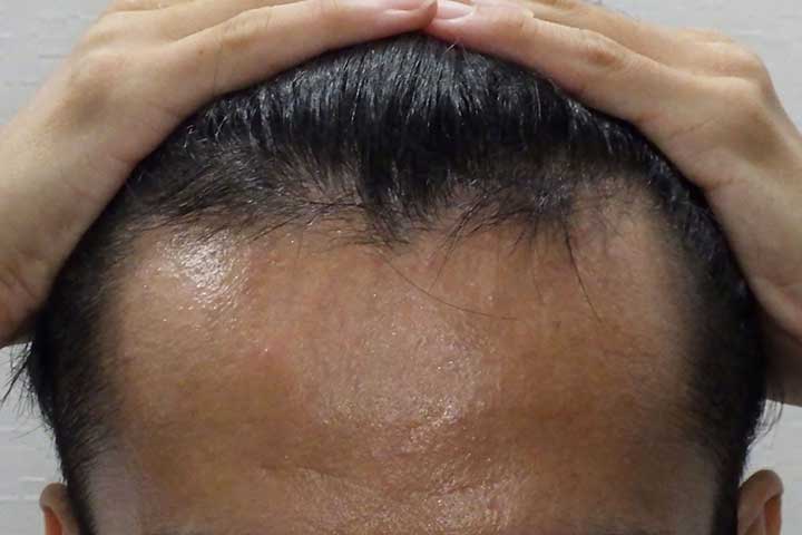 男性用発毛総合治療薬「Pro Hair+」Aセットから治療開始 初期脱毛は特に感じられなかった 服用2ヶ月目から薬の濃度を一段階上げて処方し、3ヶ月目で発毛実感 12ヶ月目まで同じ濃度で継続