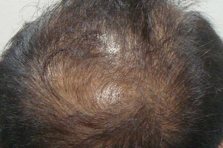 男性用発毛総合治療薬「Pro Hair+」Aセットから治療開始 服用1ヶ月目に初期脱毛実感 服用2ヶ月目から薬の濃度を一段階上げて処方し、3ヶ月目で発毛実感 6ヶ月でもう一段階お薬の濃度をあげ、18ヶ月目まで同じ濃度で継続