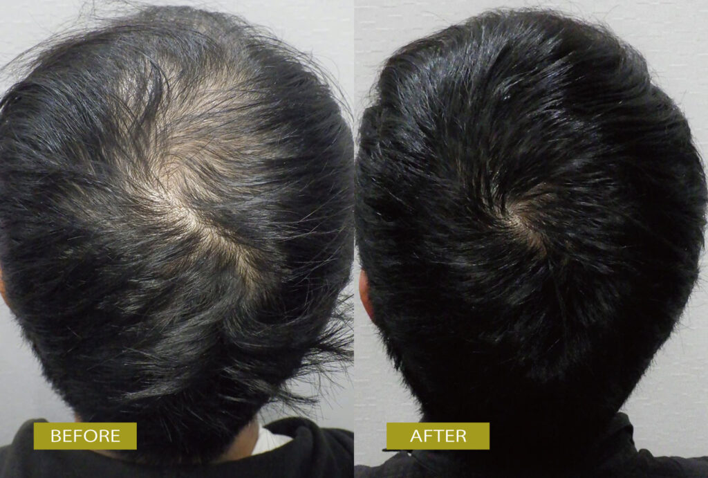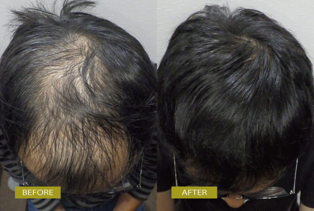 頭皮の露出も気になる状態でしたが、内服薬を毎日服用していただいたところ、半年でかなり変化がでています。