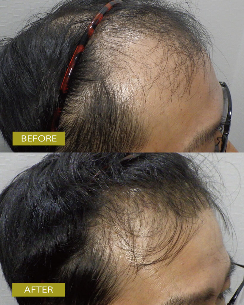 10年程前から薄毛の症状に悩んでいたとのことで、特に抜け毛や地肌の露出、軟毛化を気にされてご来院されました。