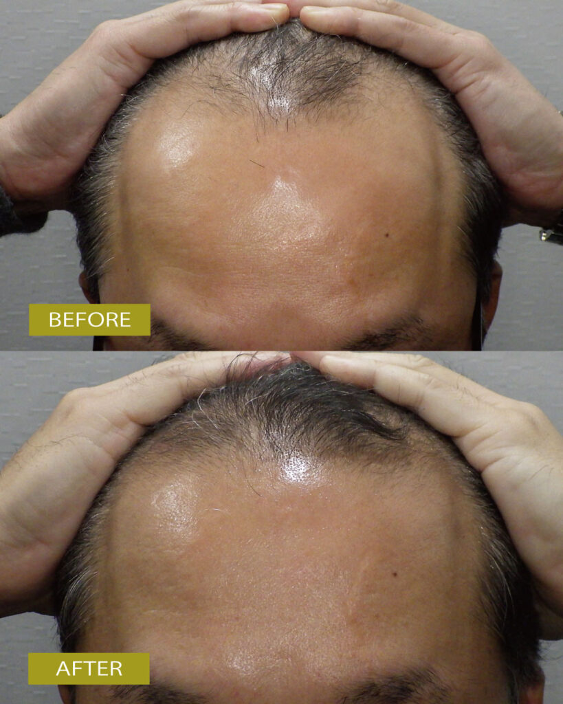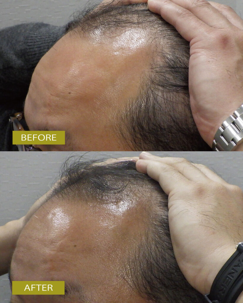 こちらの患者様は数年前から薄毛が進行し、特に生え際の後退や頭頂部の頭皮の露出を気にされ、当院へご相談に来られました。