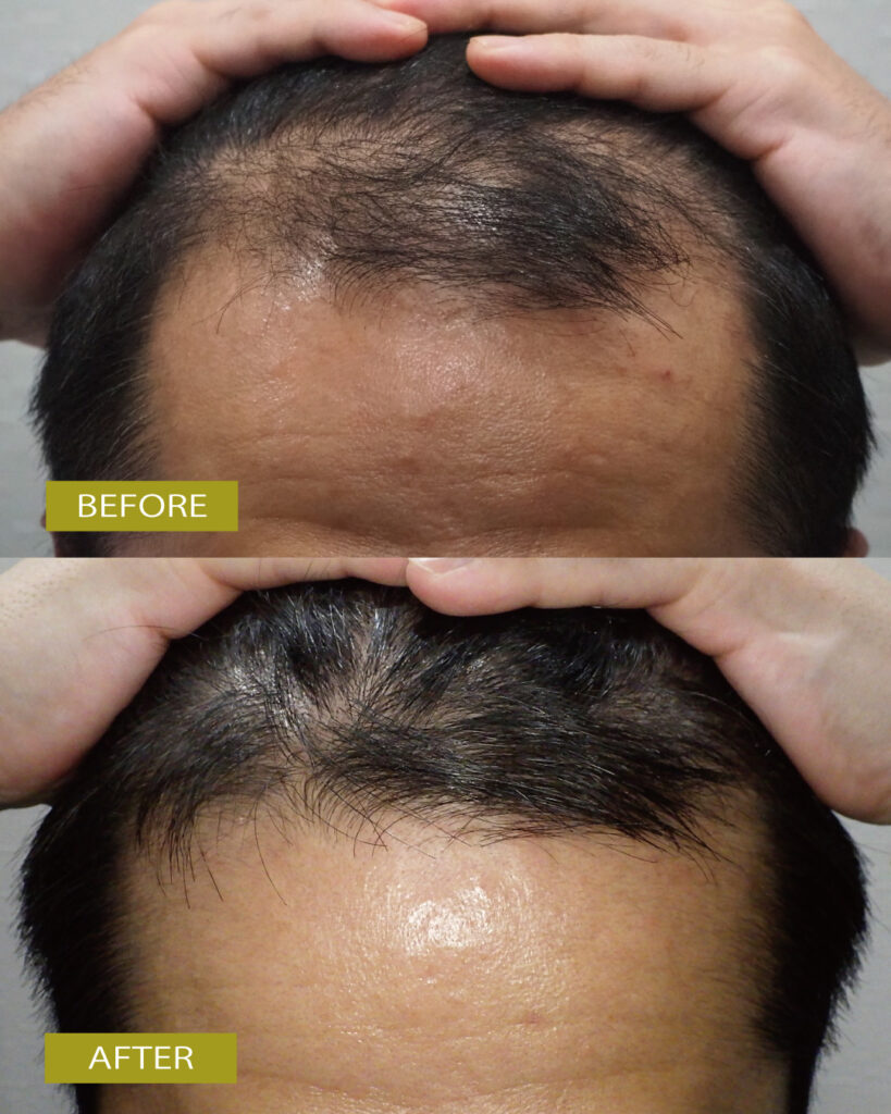 こちらの患者様は6年程前から頭頂部から前頭部にかけて薄毛が進行してきたとのことで当院へご相談に来られました。