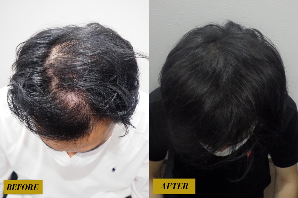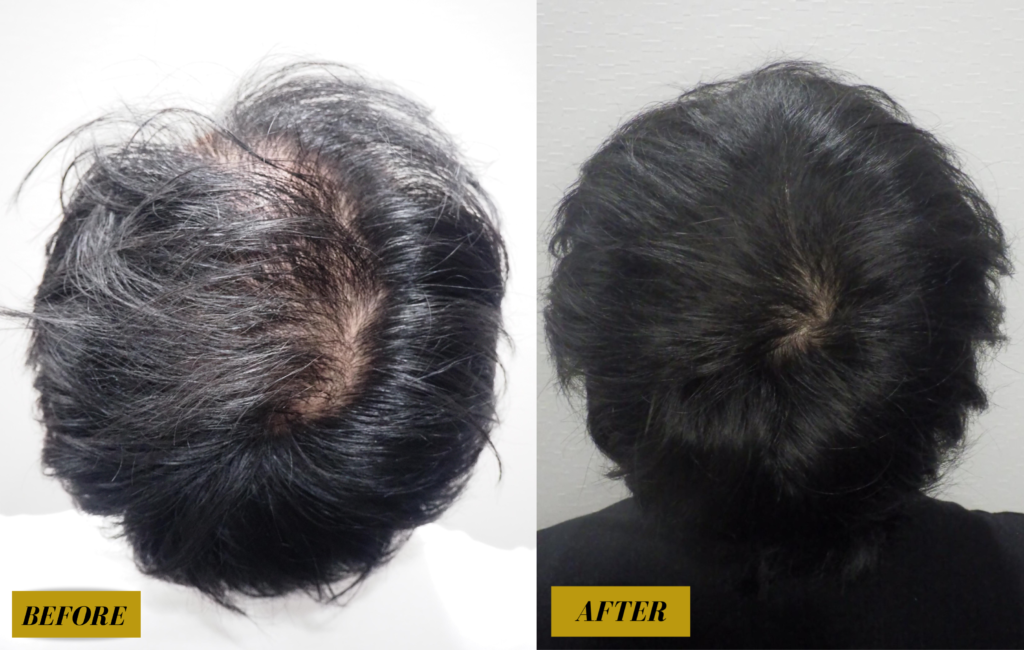 内服前は頭頂部の頭皮の露出が目立っていましたが、1年後には全く目立たなくなりました✨