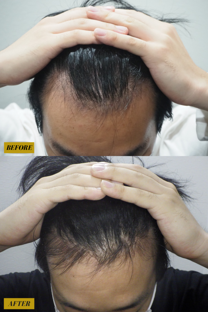 産毛が生え、産毛がしっかりとした髪の毛になっているため生え際の後退が目立たなくなりました![]()