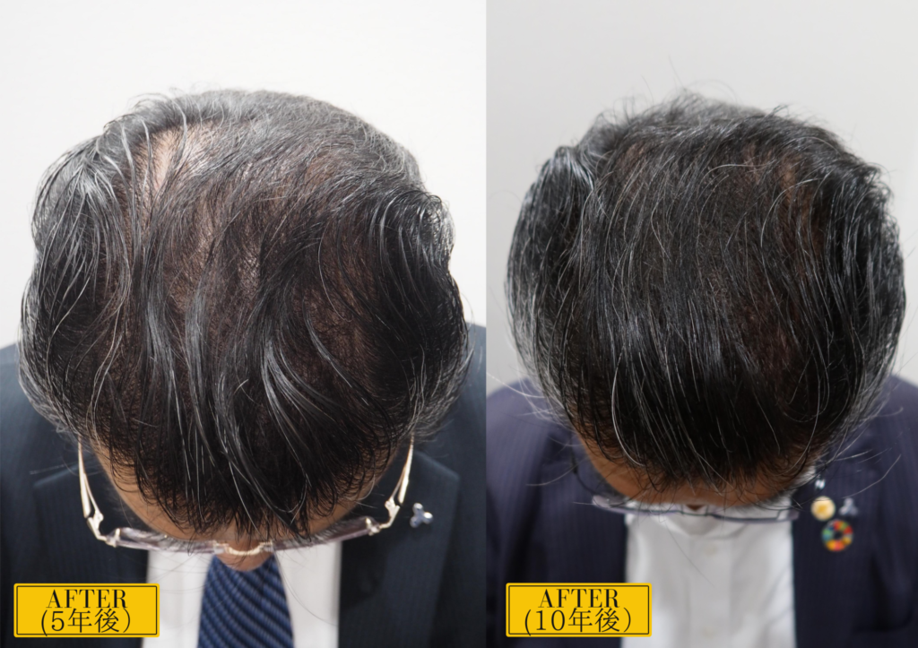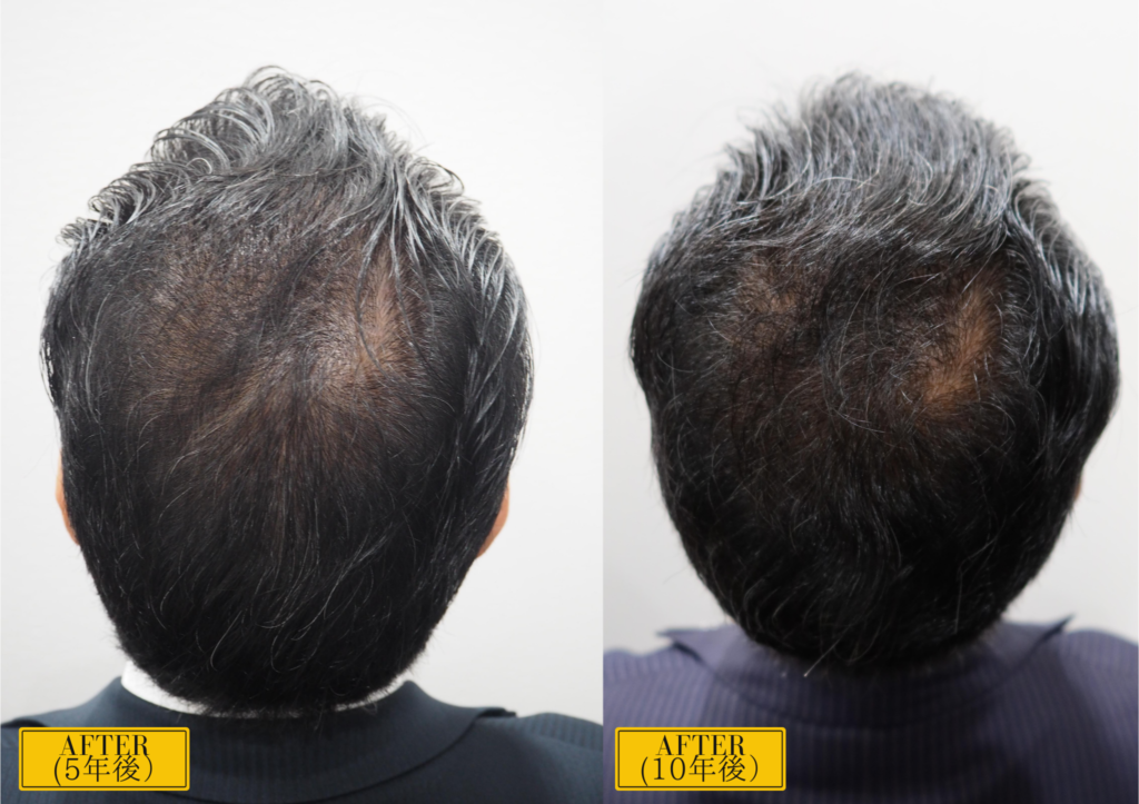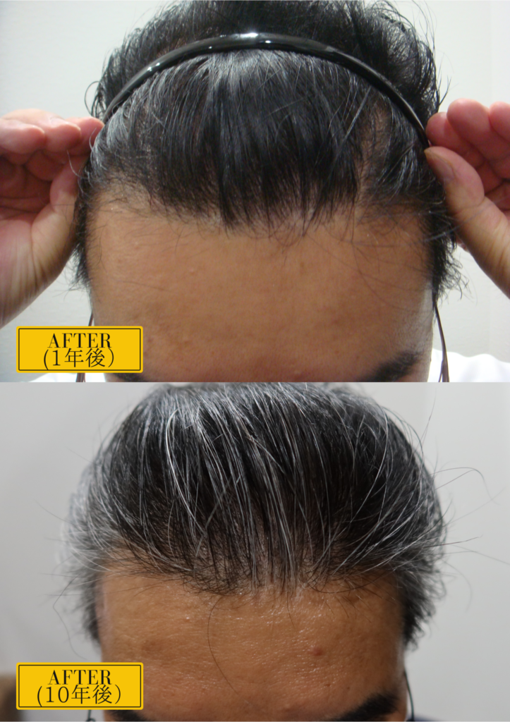 内服濃度を調整しながらですが、発毛から10年経った現在でもしっかり維持が出来ている状態です⭐